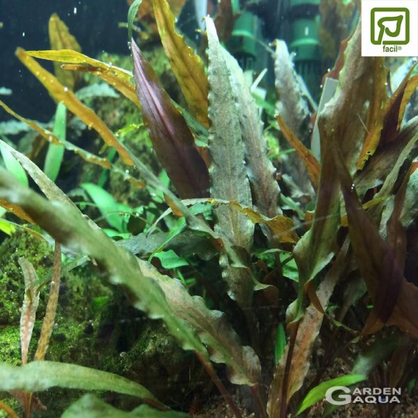 La variedad triploide de Cryptocoryne undulata de Sri Lanka tiene hojas más anchas y un bonito patrón de manchas.