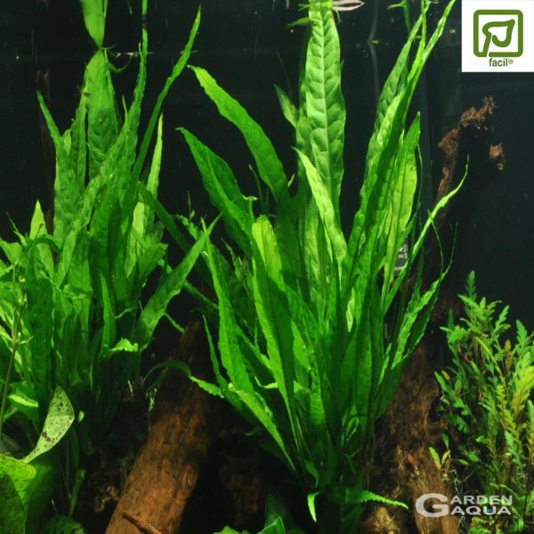 Planta en maceta de 5 cm. Microsorum pteropus es un helecho acuático originario de Asia, de 15-30 cm de altura. Se cultiva sobre una raíz o una piedra, sujeto con hilo de pescar hasta que se haya afianzado. Si se planta en el fondo, no cubra el rizoma porque se pudrirá. Fácil de propagar dividiendo el rizoma horizontal. Es una planta resistente que crece en todas las condiciones. Las manchas negras debajo de las hojas son esporangios (órganos reproductores), no signos de enfermedad, como muchos creen.