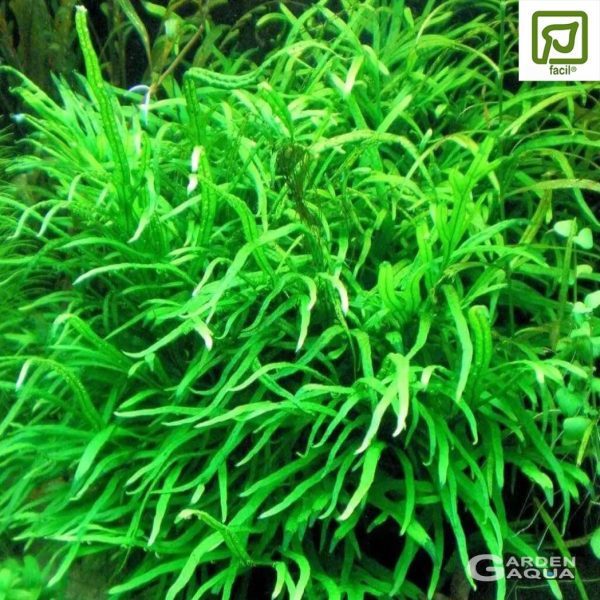 Planta en maceta de 5 cm. Microsorum pteropus es una especie muy variable, y se pueden cultivar nuevas variedades con facilidad. Microsorum pteropus «Narrow» tiene hojas más estrechas, que crecen en un ángulo menos agudo desde el tallo que el Microsorum pteropus normal. Las hojas alcanzan entre 10 y 20 cm y el rizoma entre 10 y 15 cm o más. La planta se adhiere fácilmente a raíces y piedras. Es una planta decorativa, también adecuada para acuarios más pequeños.