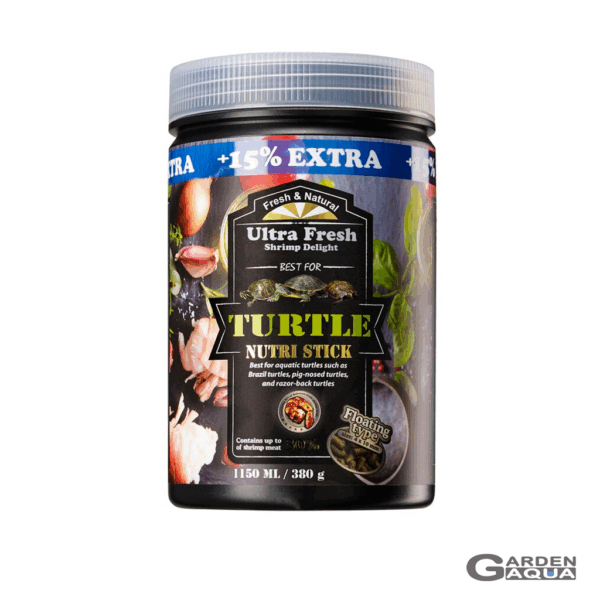 ALIMENTO COMPLETO PARA TORTUGAS ACUÁTICAS. Con un ratio entre carne y vegetales de 4:6 y 3:1 de Calcio/fósforo . Proteínas 100% naturales procedentes de carne fresca, vegetales y algas marinas. 30% de camarones espada silvestres y camarones Akiami. 45% de espirulina natural + vegetales. 0% de aditivos, colorantes artificiales o subproductos.Fórmula especial compuesta por camarones frescos y pasta de camarón que ofrecen una excelente palatabilidad y una nutrición de calcio natural.Elaborado con alto contenido de camarón fresco y pasta de camarón (hasta un 30%), además de ajo y una mezcla de ingredientes naturales cuidadosamente seleccionados.Una ingesta rápida mantiene el agua limpia y reduce los olores.Con 10 horas de procesamiento a baja temperatura y mejoradas con probióticos intestinales, nuestra fórmula conserva los sabores naturales y los valores nutrimentales de sus ricos ingredientes frescos.Está diseñado para ablandarse rápidamente una vez en el agua, pero no se desintegra o enturbia el agua.Se añaden polisacáridos de Ganoderma, ajo y vitaminas del grupo B para aumentar la capacidad inmunitaria.Su fórmula de calidad Premium activadora del sistema inmune: rica en ingredientes funcionales valiosos, tales como polisacáridos de Ganoderma, ajo, espirulina australiana, vitaminas A, D3, C, E, B1, B2, B6, y B12), β-caroteno, minerales naturales y elementos traza para fortalecer el sistema inmunológico de las tortugas acuáticas, mejorar su metabolismo, aumentar su energía y reducir el riesgo de enfermedades.Tipo flotante.